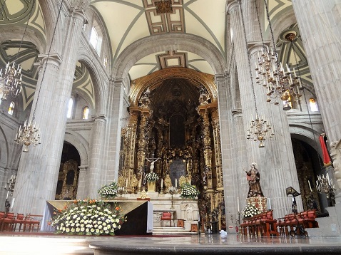 メキシコにあるすべてのカトリック教会を統括するメトロポリタン・カテドラルの迫力ある建物が目に飛び込んで来る。