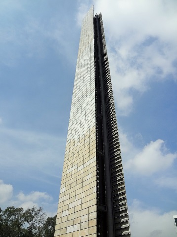べジャス・アルテス宮殿前の広場から見たラテンアメリカ・タワー。182メートルある。右側の建物はデパートのシアーズ。