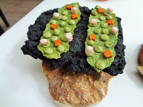 温かいアボカド。ねっとりしたアボカドにトビっ子みたいなプチプチ(アマランサス科のKiwicha)、ホワイトチョコレートみたいなパリパリの食感が合わされる。ソースはちょっと醤油が入っているような感じ。すごく面白いと思った。